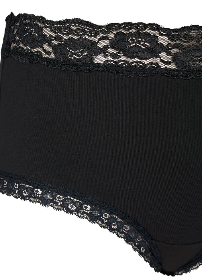 Comfortable hipster briefs in soft cotton quality. The briefs have a high waist and feminine lace edging.