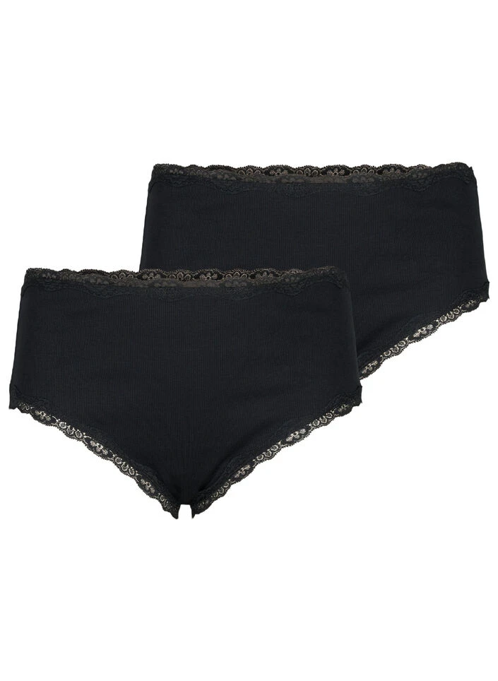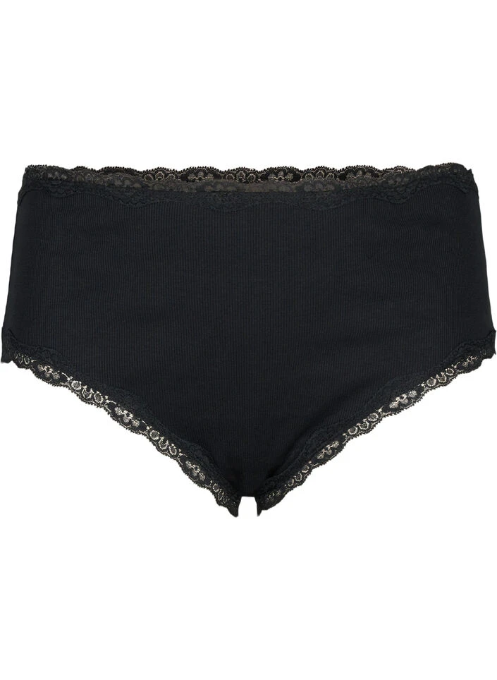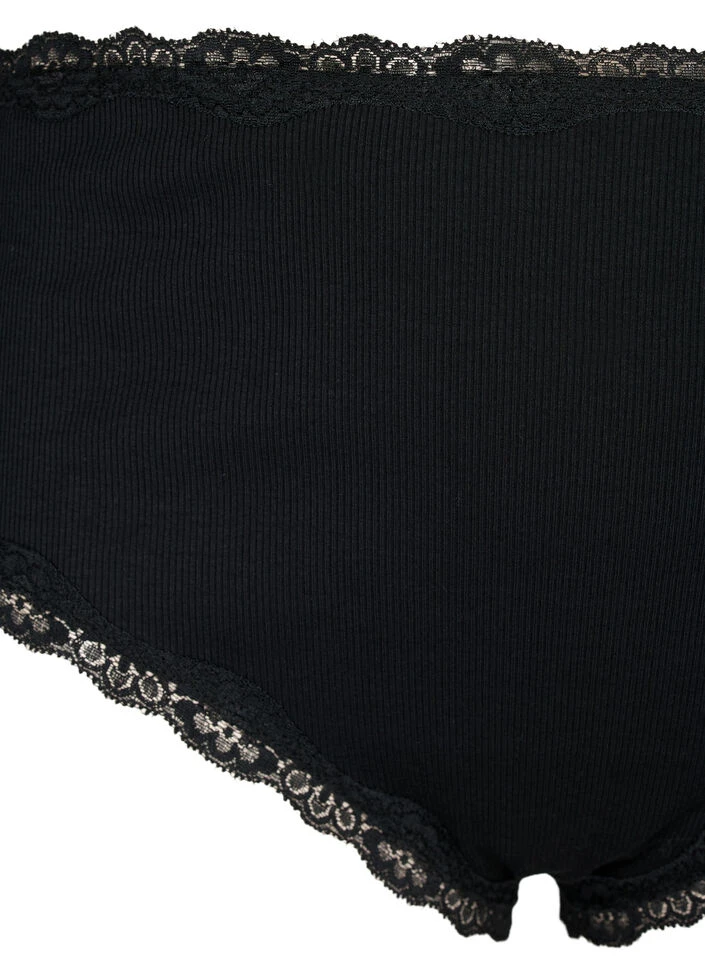Simple and comfortable knickers with regular waist height. The underwear is made in a soft cotton with rib and feminine lace edges.