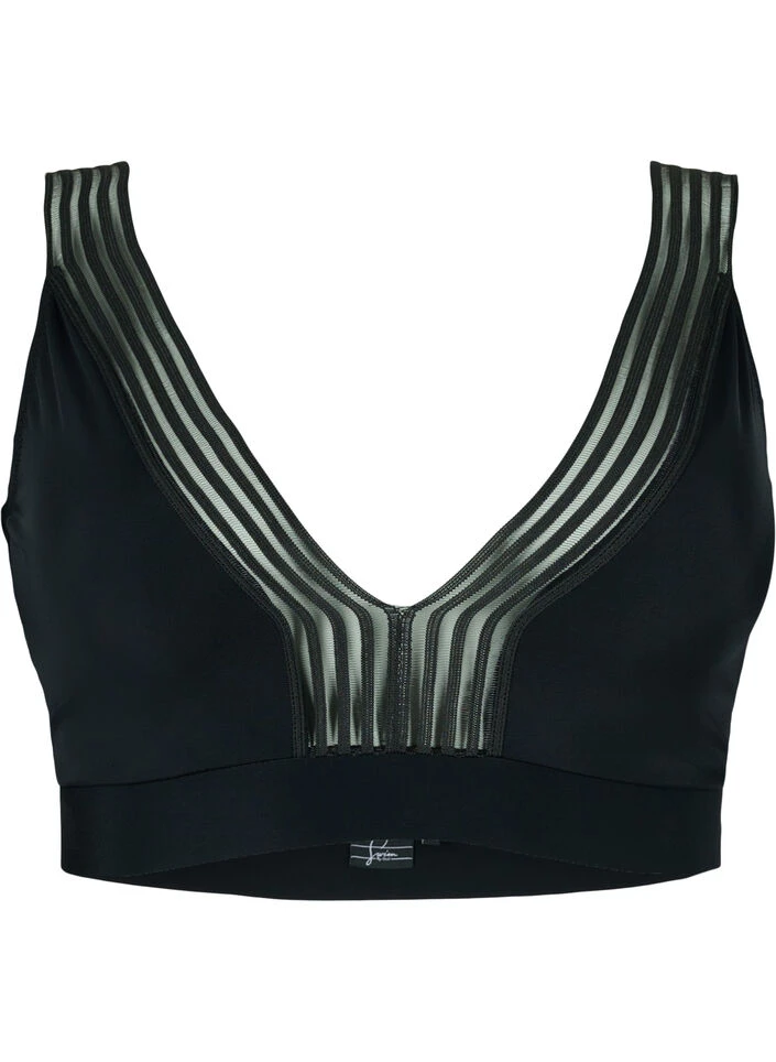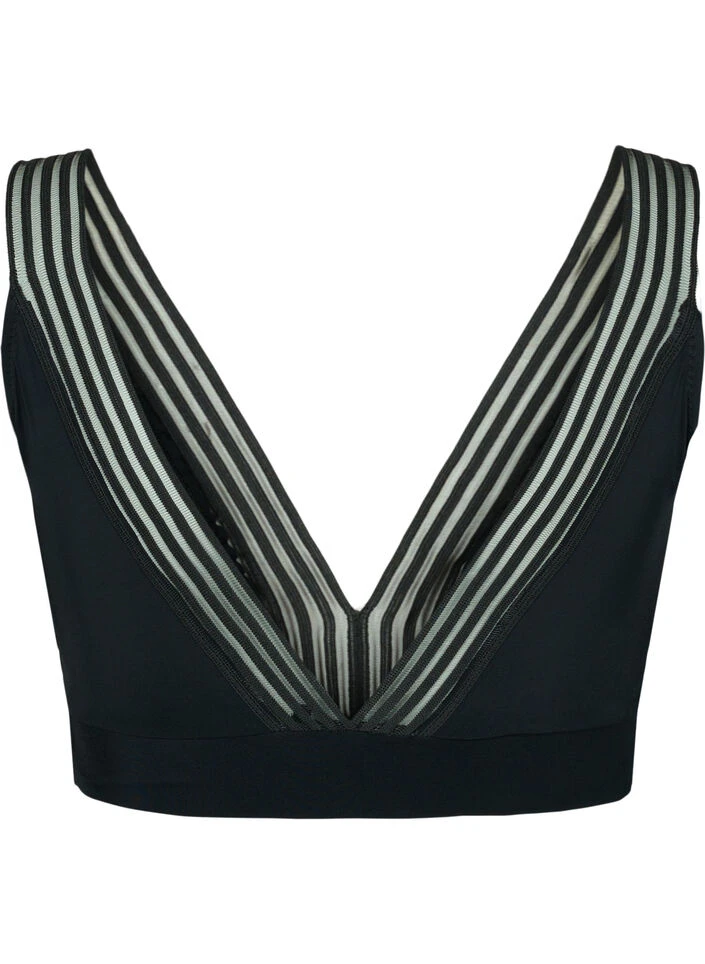 Trendy bikini without padding or underwires, with a gorgeous striped mesh at the edges. It is made in a doubled-layered fabric that wraps beautifully around your curves and provides good support and comfort. The top is designed with a deep v-neck on both the back and front.