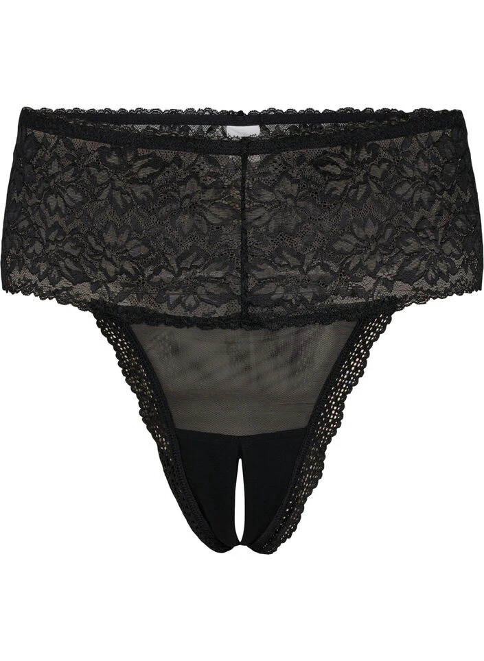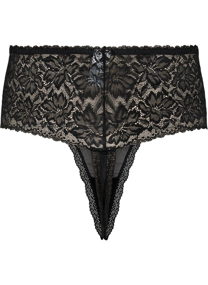 Bottomless g-string, with wide lace trim and a comfortable fit with a regular waist height.