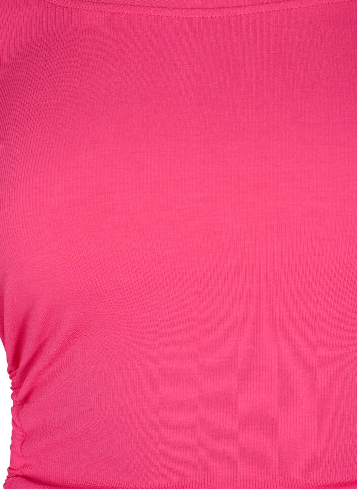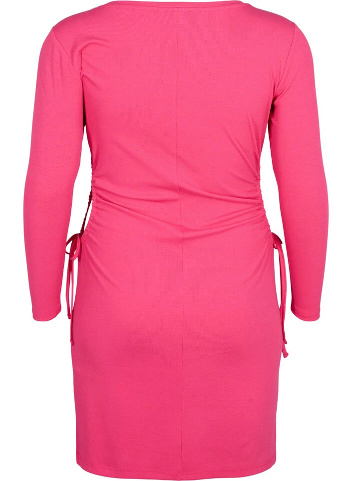 Close-fitting dress, which is made in a stretchable rib quality. The dress has a trendy detail with cutout and adjustable drawstring on the sides, which gives a cool look.