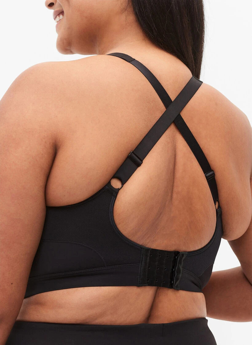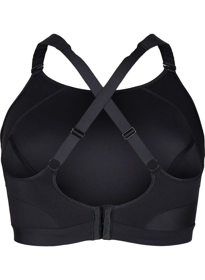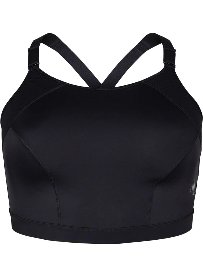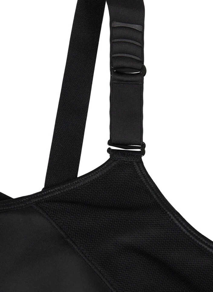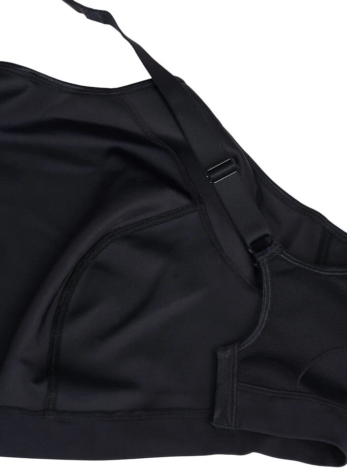 Shaped sports bra with high front, which ensures maximum support. It is made in a durable, stretchy and sweat-absorbing fabric, and has wide, adjustable shoulder straps with hooks at the front so it can be gathered into a racerback.