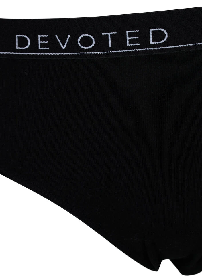 Super comfortable knickers in a gorgeous cotton fabric, with a regular waist height. The knickers have an elastic hem in the waist with decorative text details.
