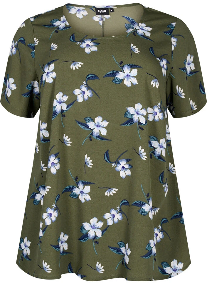 Short sleeve blouse with round neckline. The blouse has a loose a-cut with a nice all-over print.