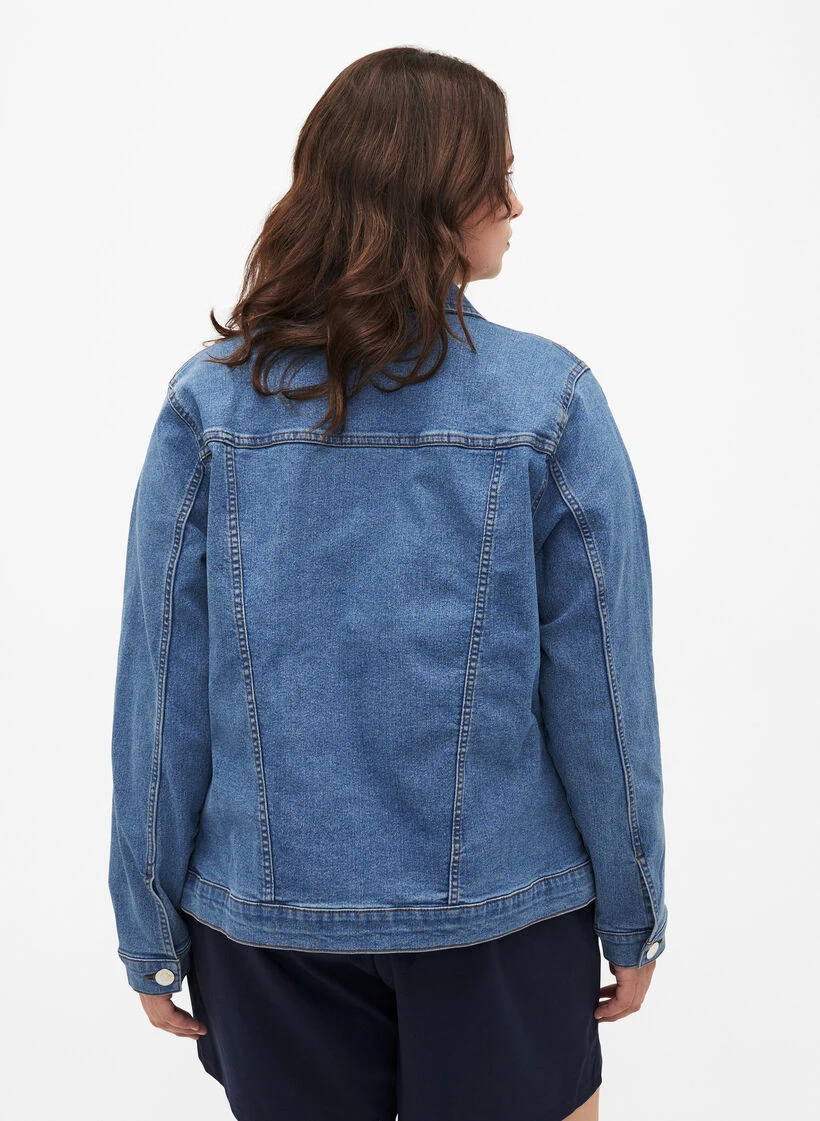 Denim jacket in a stretchy and comfortable cotton blend. This denim jacket has a classic and timeless design with a collar, button closure, chest pockets and side pockets.