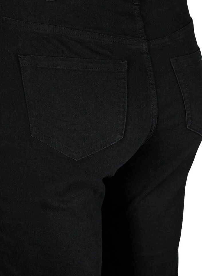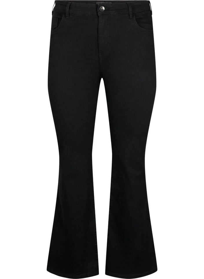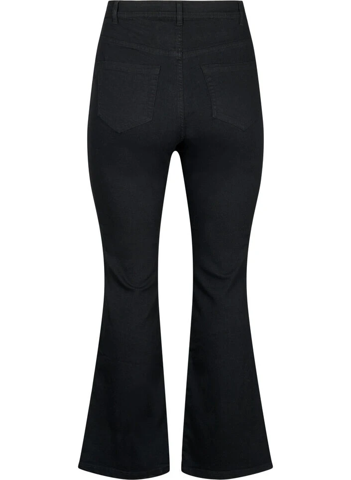 High waisted jeans with bootcut and classic pockets and belt loops. They are made in a comfortable and stretchy cotton blend.