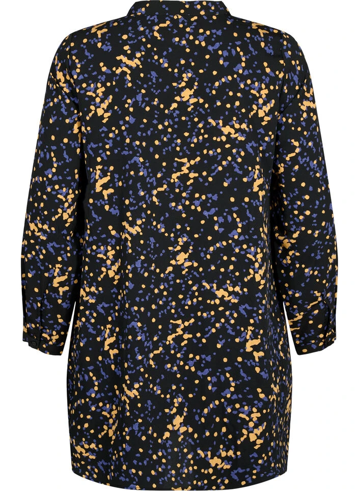 Long-sleeved tunic with a beautiful all-over print. The tunic has a round neck with a button closure, small slits in the side and a loose fit.