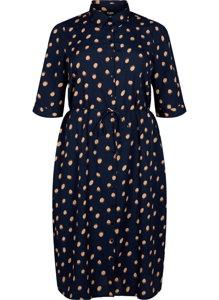 Shirtdress with nice all-over print and midi length. The dress has 3/4 sleeves, full button closure, small slit in the side and fine detachable tie band in the waist, emphasises the feminine silhouette.