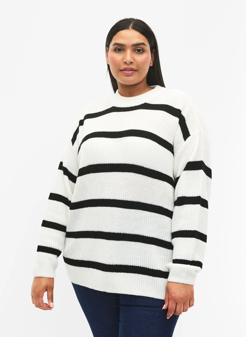 Knitted sweater in a beautiful and timeless striped design. The knitted sweater has long sleeves, a round neck and a loose, comfortable fit.