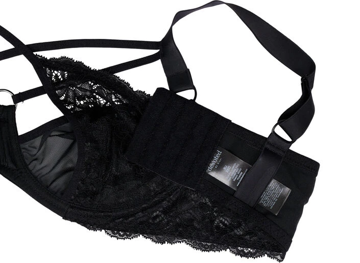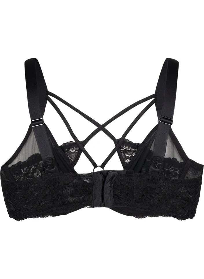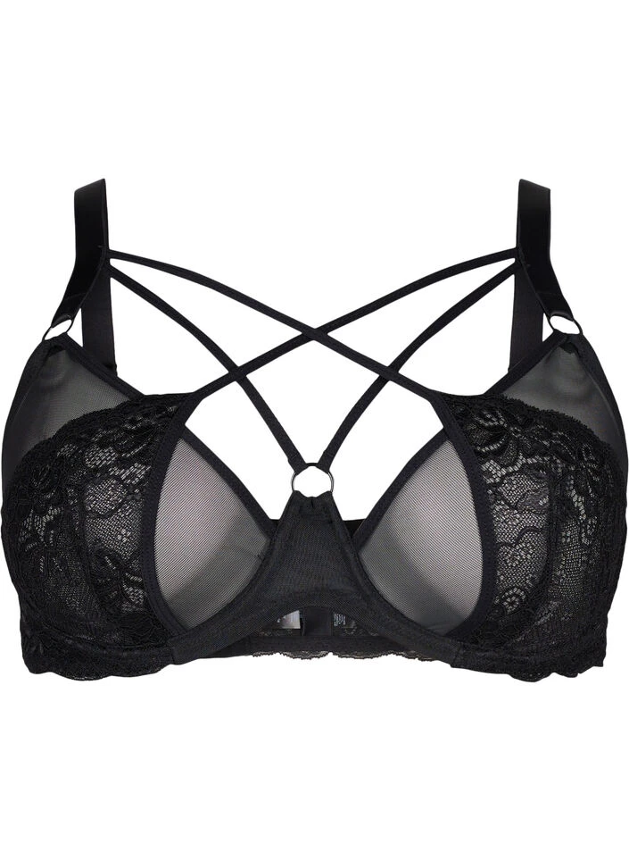 Full coverage bra with mesh and beautiful lace quality. The bra has a decorative string detail across the chest and adjustable shoulder straps.