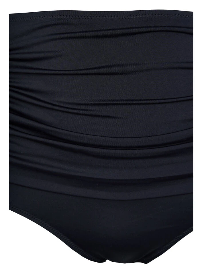 Nice bikini bottom with high waist and decorative drapes on the front.