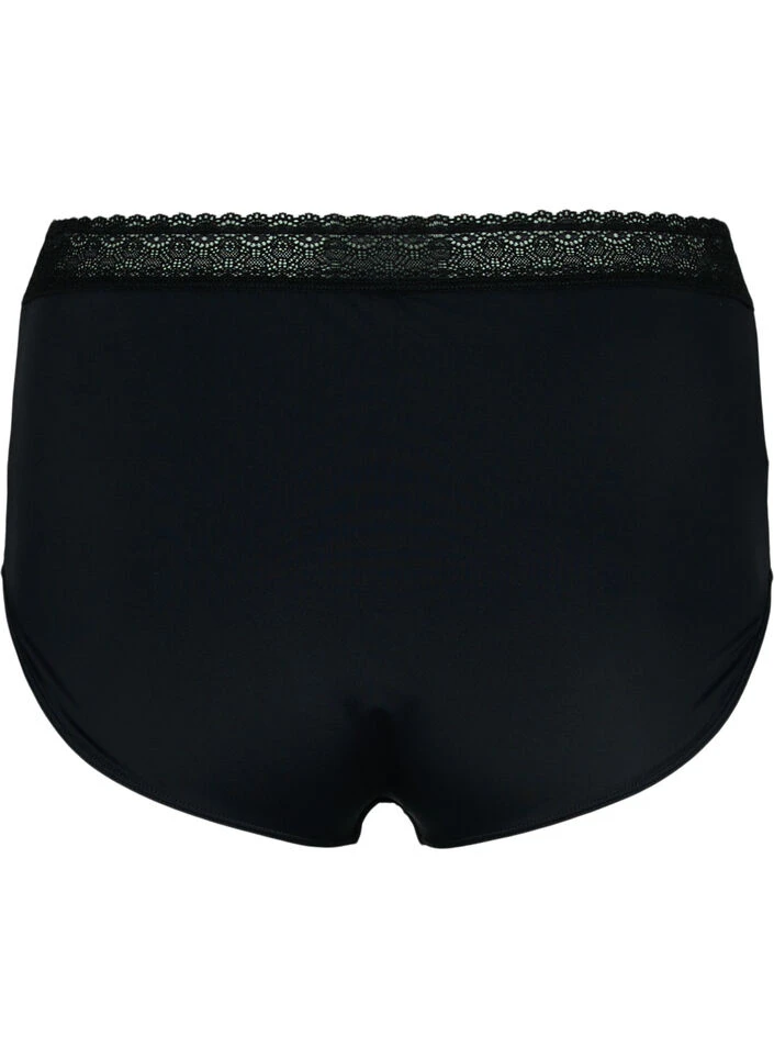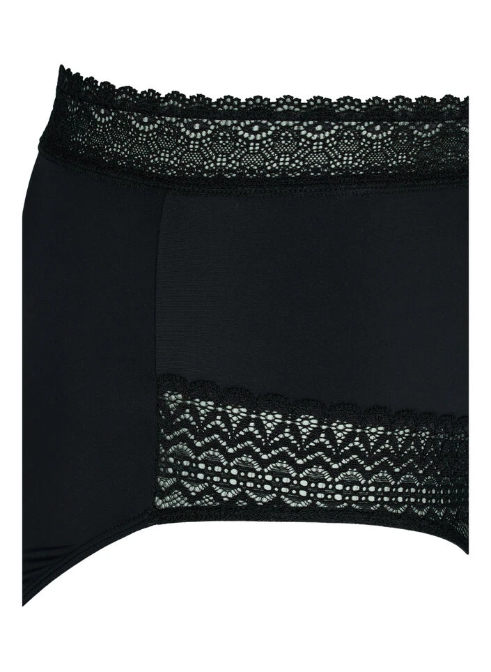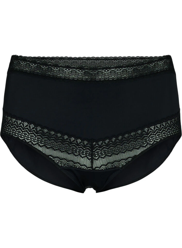 High-waisted pretty knickers with wide feminine laces on the edges.
