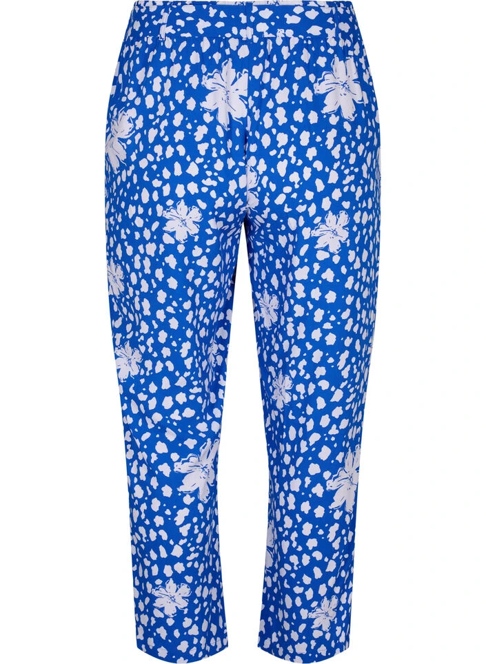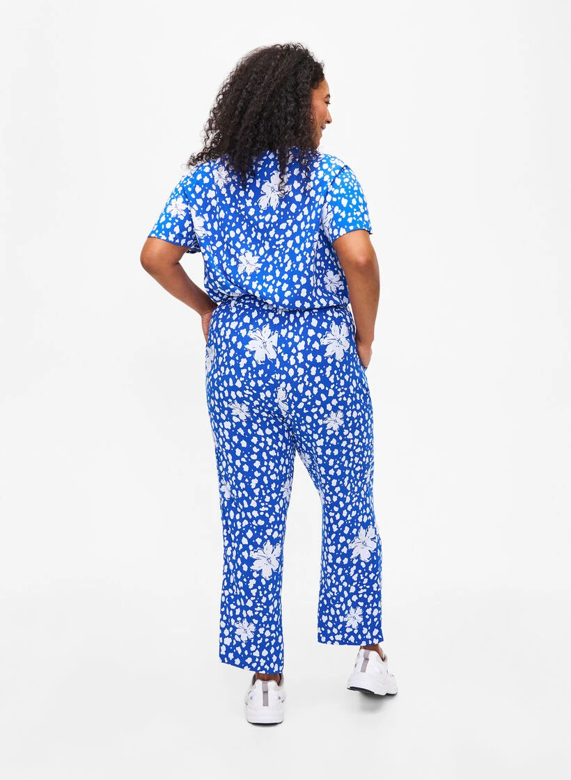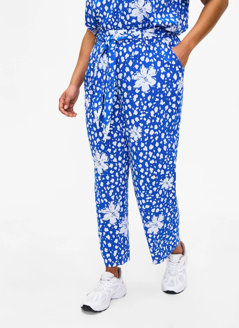 Loose pants in 100% LENZING™ ECOVERO™ Viscose with a beautiful all-over print. The pants have side pockets and a high waist with an elasticated waistband and a matching, detachable waist tie.