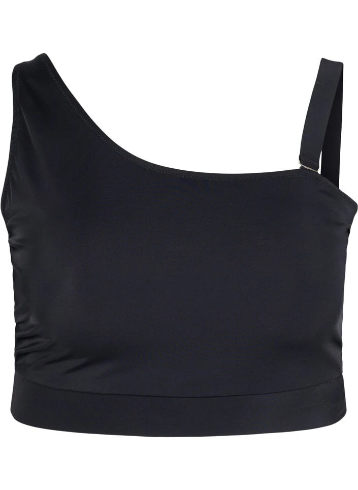 Nice one shoulder bikini top with adjustable shoulder straps. The top is made of 2-layer fabric that is quick-drying, hugs your shape and provides good support and comfort. Bikini top is without underwire and padding