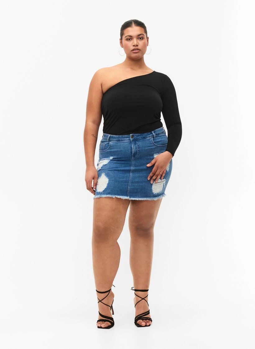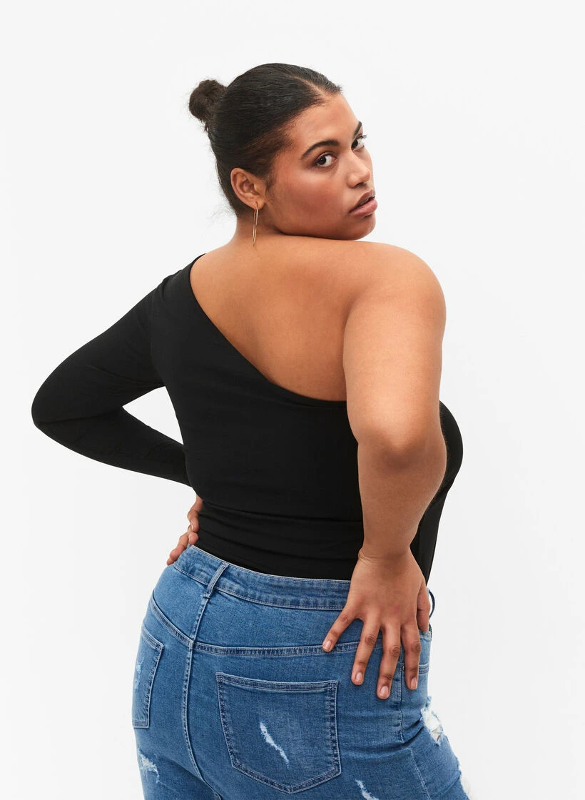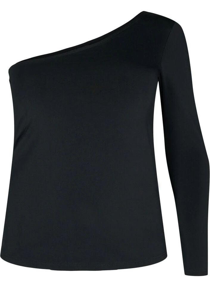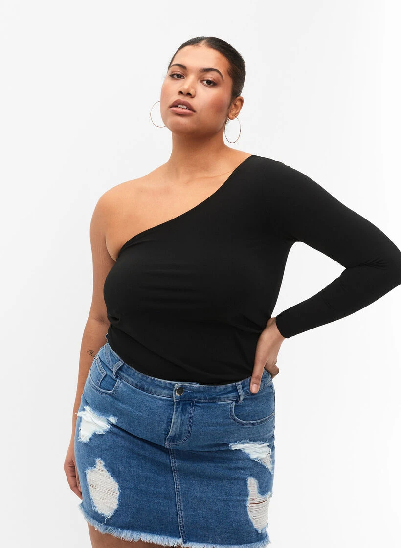Trendy solid-coloured one-shoulder blouse with a tight fit, which is made in a comfortable and stretchy quality.