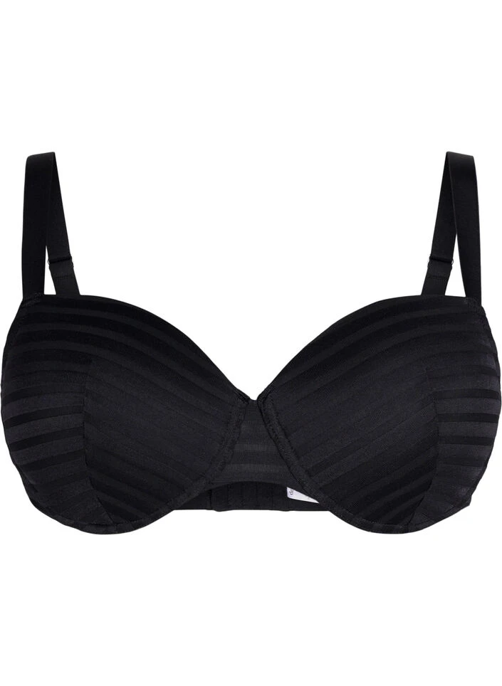Tone-on-tone striped bra with underwire and moulded padded cups. It has wide adjustable straps and is made in an extra stable quality, which gives extra good support to the bust.