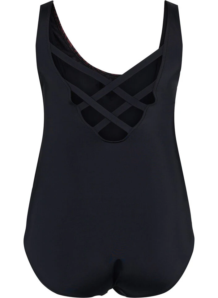 Beautiful all-over patterned swimsuit, which is sewn with double-layer fabric that sneaks beautifully around your shapes and provides good support and comfort. The swimsuit is designed without underwire and padding and has a feminine criss-cross back. The quality is quick-drying and durable.