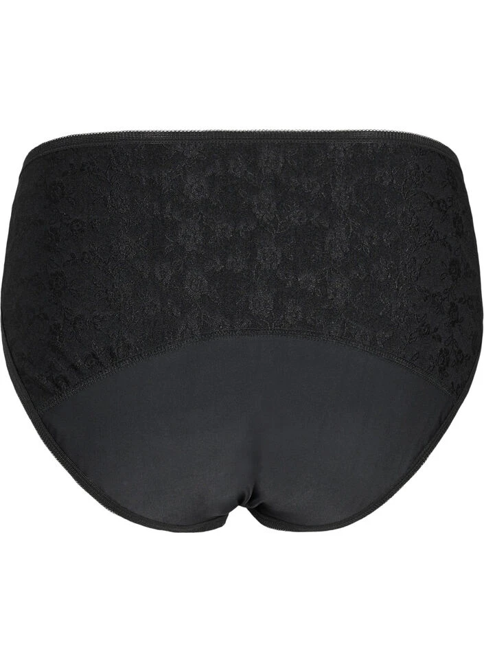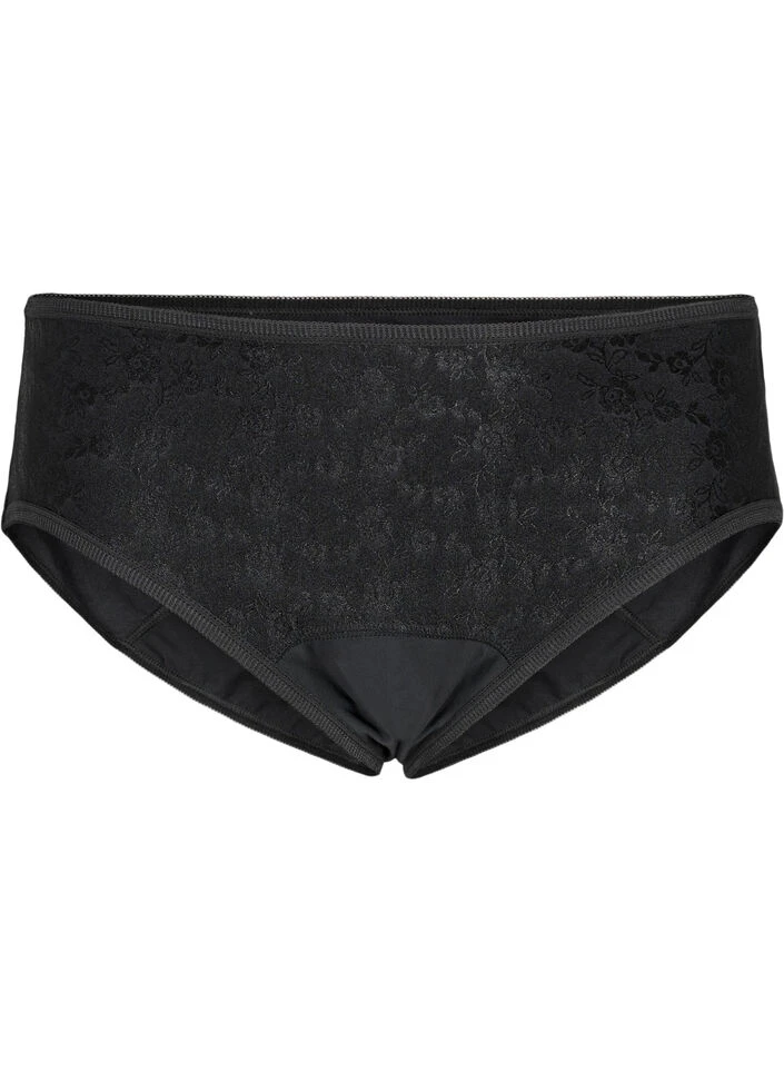 Practical period pants that replaces your regular hygiene products. It has a fine lace structure and regular waist height. The underwear has a super absorbent gusset that can absorb up to 5 tampons and a moisture wicking layer to keep you safe and dry.