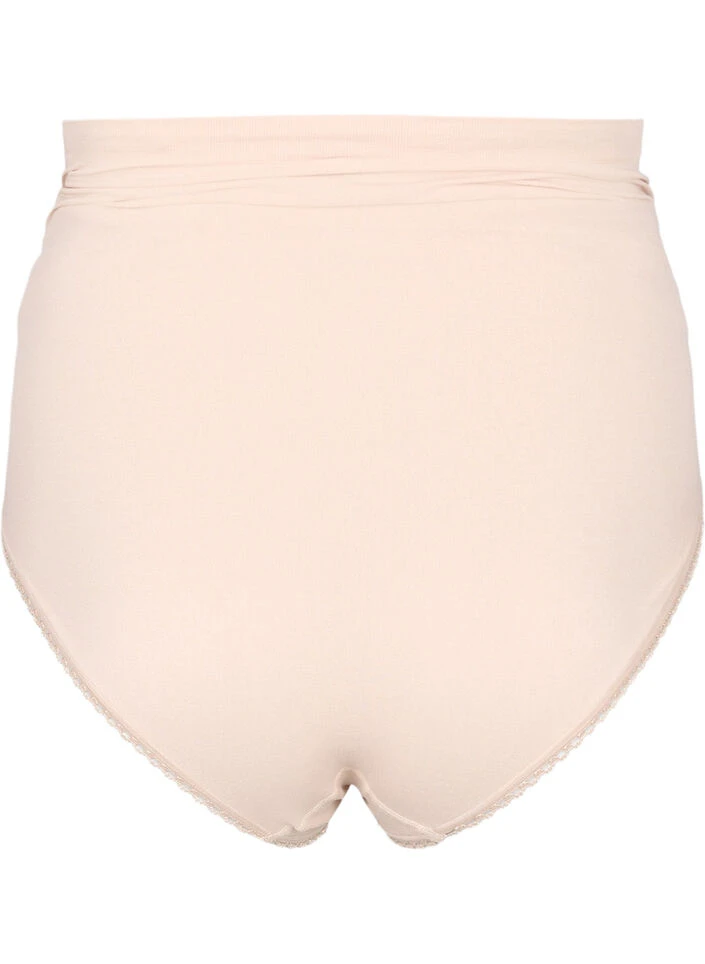 These maternity panties are designed with a super high waist that adapts to the growing belly, providing a secure and supportive feel all day long. The panties have no irritating seams and are finished with a lace trim at the leg openings, adding a feminine touch.