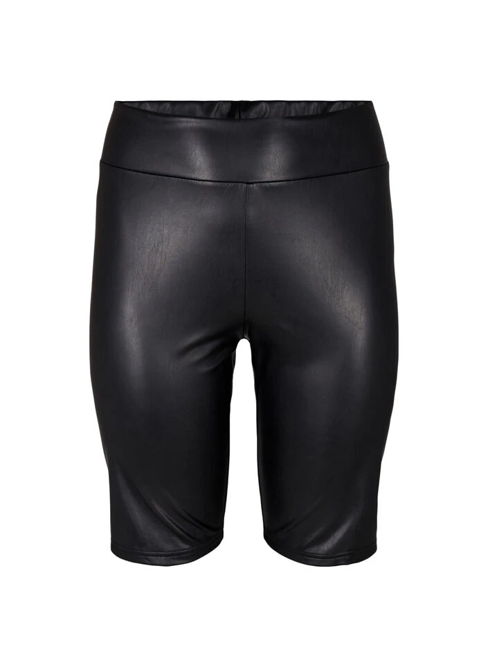 Trendy cycling shorts in shiny and stretchy fabric. They have a high waist and a wide elastic waistband for comfort.