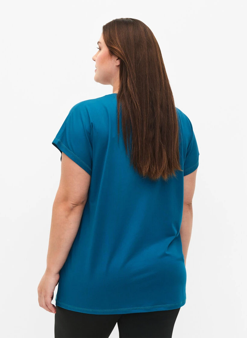 Monochrome workout t-shirt with short sleeves and a round neckline. It has a loose fit, which ensures good freedom of movement