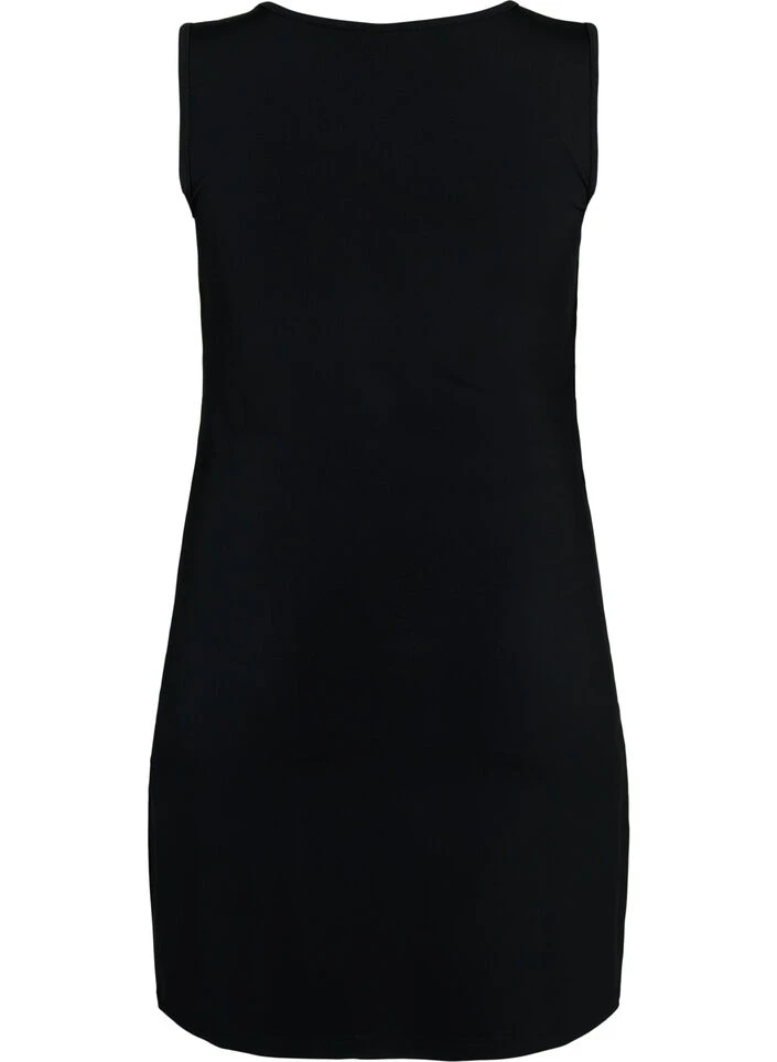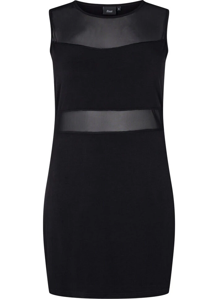 Sleeveless dress with a tight fit. It is made in a comfortable and stretchy material with contrast mesh across the chest and stomach for a trendy look.