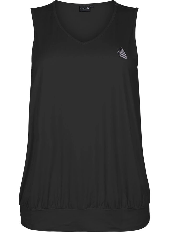 Plain sleeveless training top with v-neckline and a wide edge at the bottom, which creates a nice look to the loose fit.