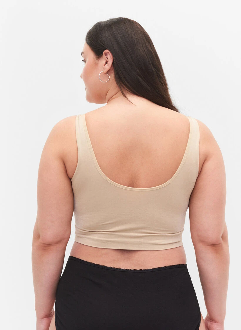 Soft and comfortable bra, non-wired and non-padded. The bra has light draping on the front, a wide elastic panel under the bust and wide shoulder straps.
