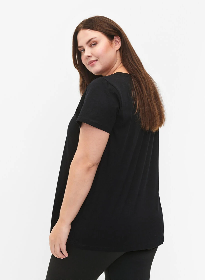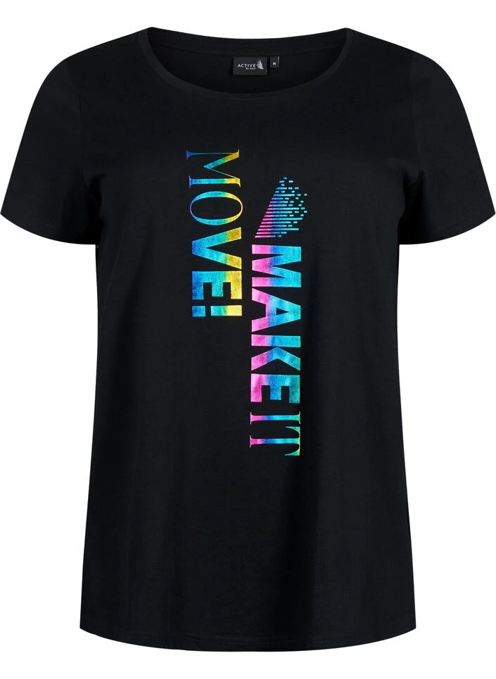 100% cotton sports t-shirt with a decorative print on the front. The t-shirt has short sleeves, a round neckline, and a loose and comfortable fit.
