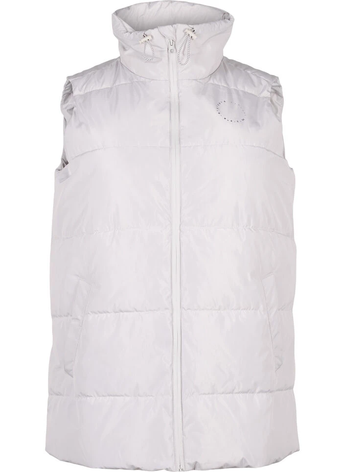 Sporty Vest with a warm and comfortable lining, designed with a logo on the chest and made in a water-repellent quality that changes colour depending on the light and surroundings. The vest has a high collar with elastic drawstring, side pockets and closes with a waterproof zipper on the front.