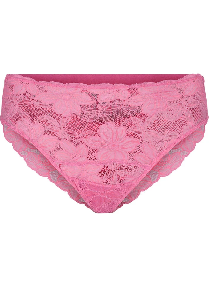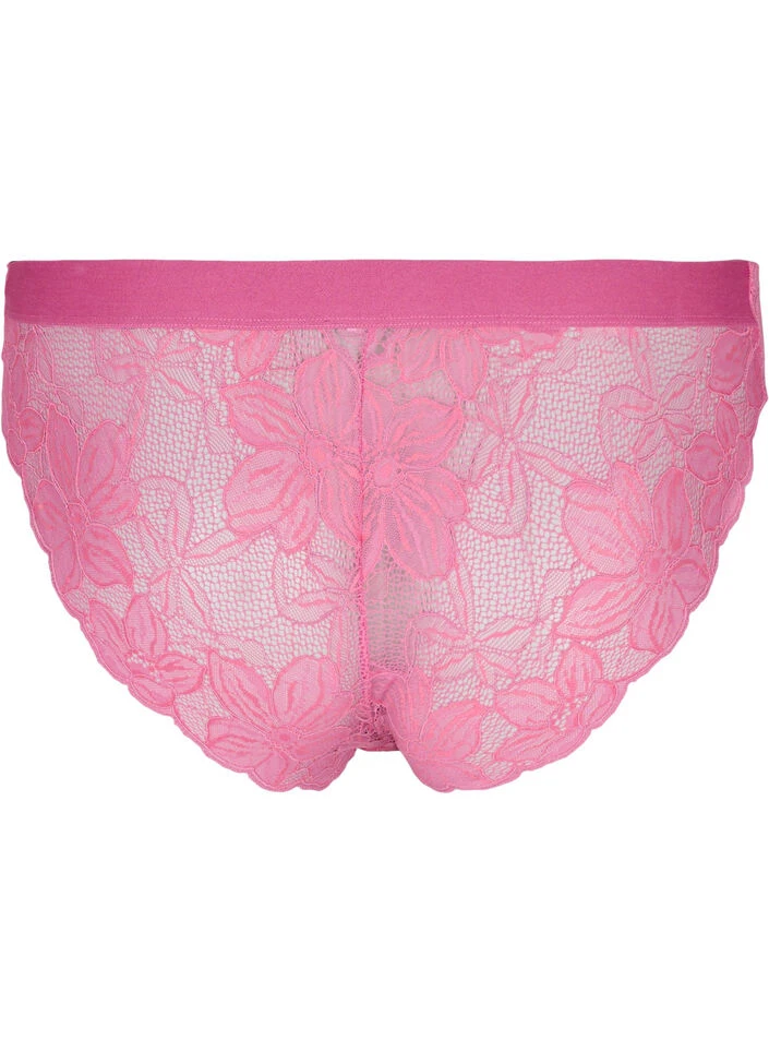 Feminine tai brief in fine lace fabric, which has a regular waist height with elastic edge.
