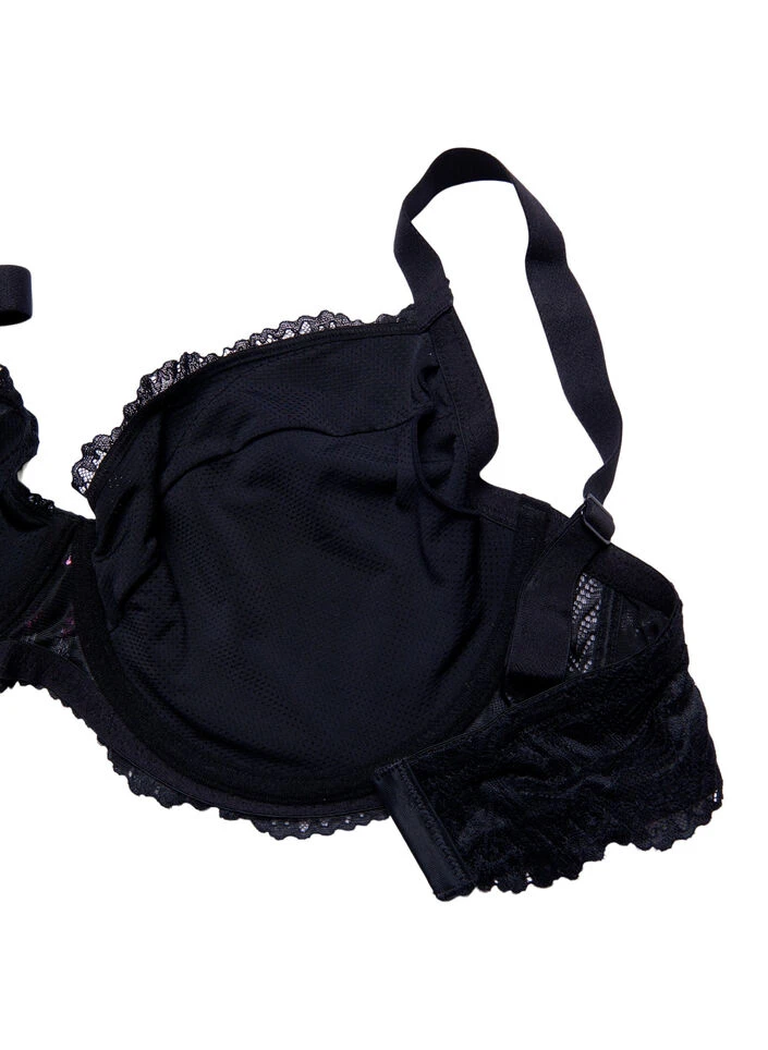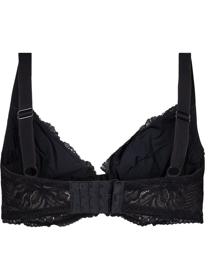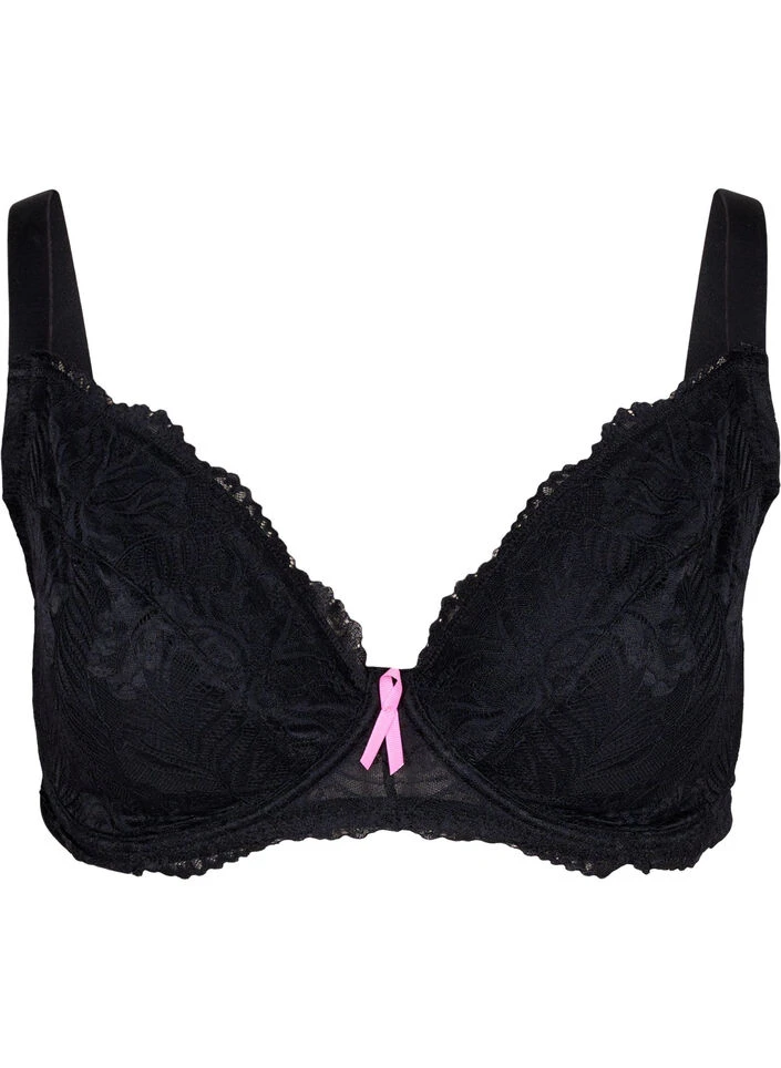 Feminine bra in beautiful lace, which has pockets in both cups for breast pads. The bra has wide adjustable straps and a small fine bow between the cups.