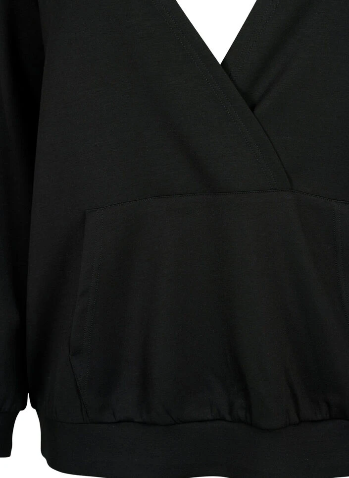 Plain sweatshirt with a V-neck and large front pocket. The sweatshirt has ribbed cuffs and hem for a loose and comfortable fit.