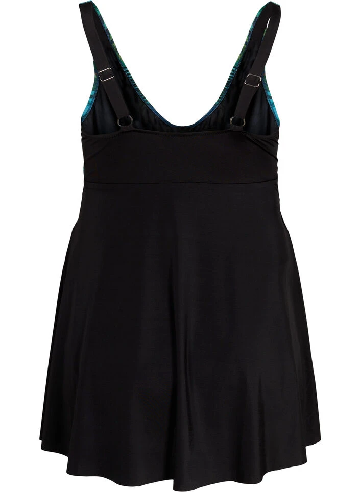 Feminine swimsuit with floral top and loose skirt at the bottom. The swimsuit has adjustable shoulder straps and is sewn in a soft double lined fabric, which sits nicely to the body and ensures a comfortable fit. The fabric is both durable and quick-drying.