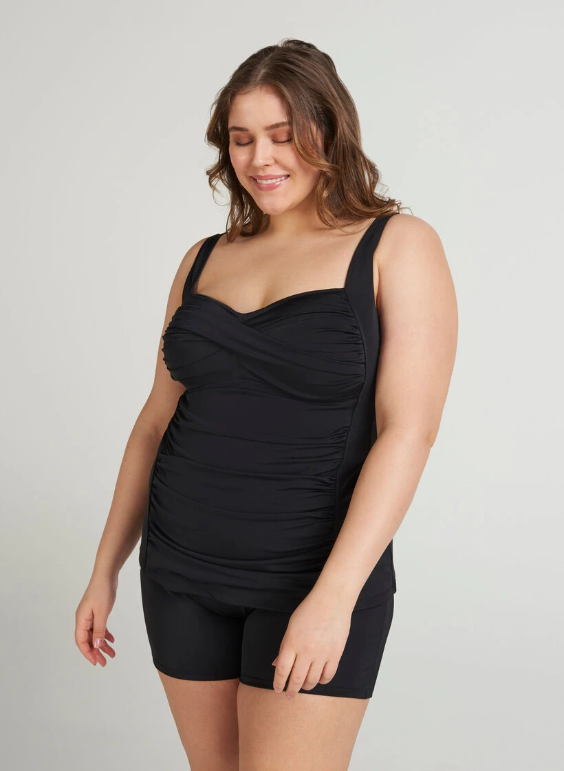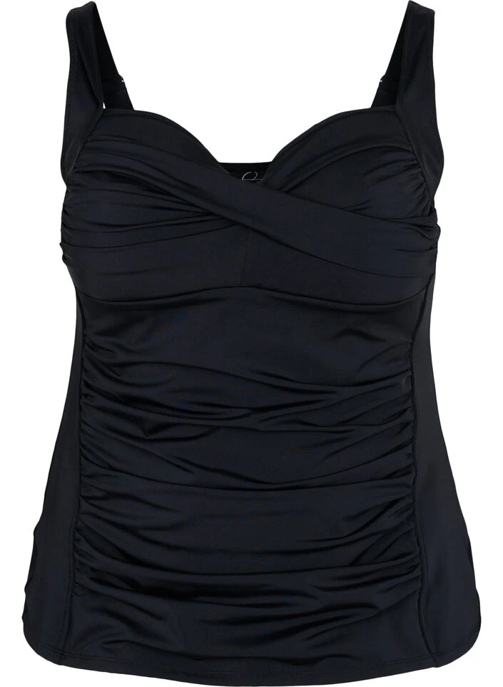 Beautiful and classic tankini with adjustable straps and drapes on the front, which gives a feminine look.