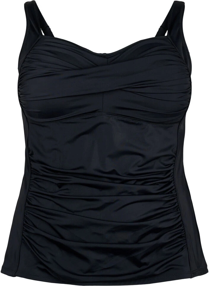 Beautiful and classic tankini with adjustable straps and nice draping on the front, which gives a feminine fit. It is made in a quick-drying and durable fabric.