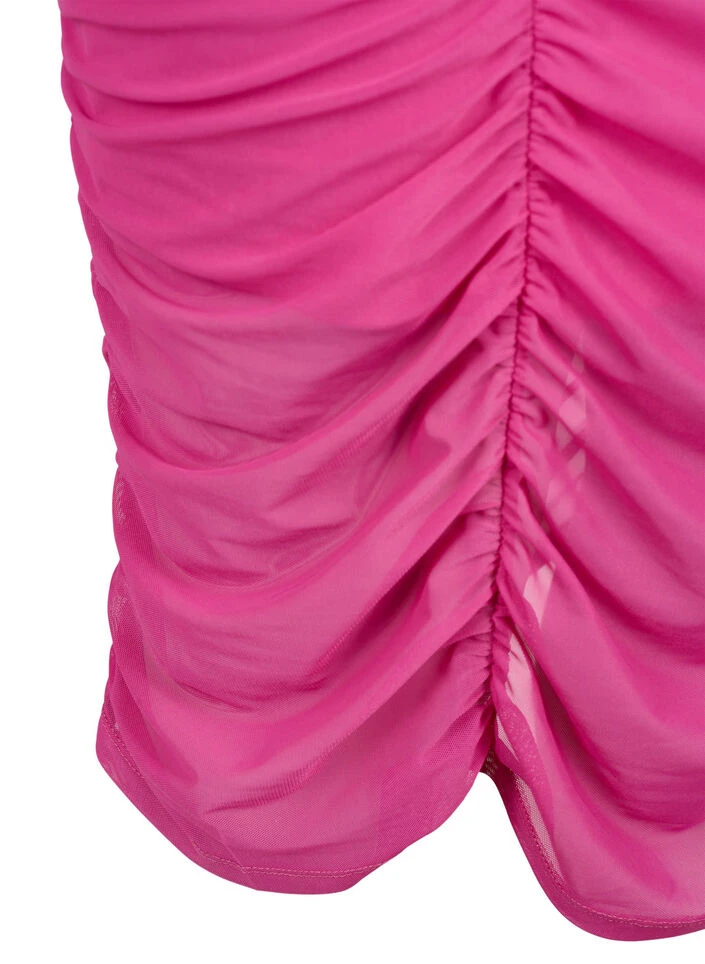 Tight-fitting dress in stretchy mesh material with soft lining. The dress has vertical seams that create beautiful and flattering draping and a sophisticated look.