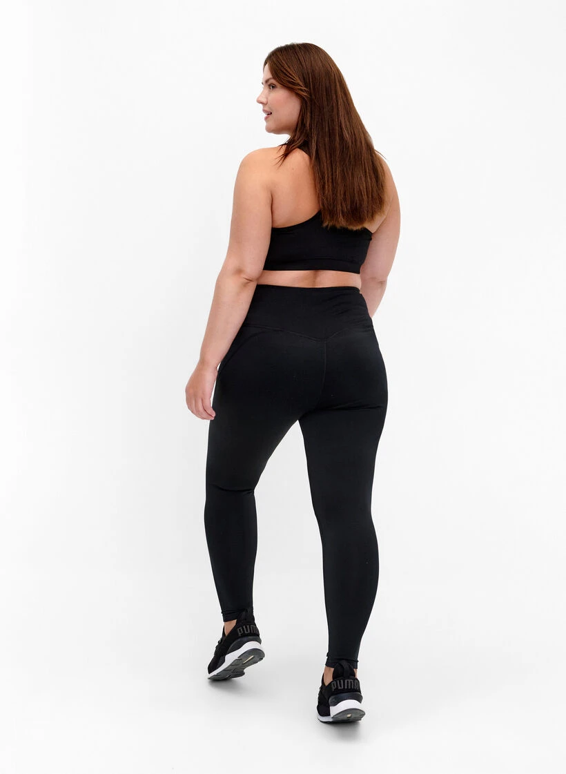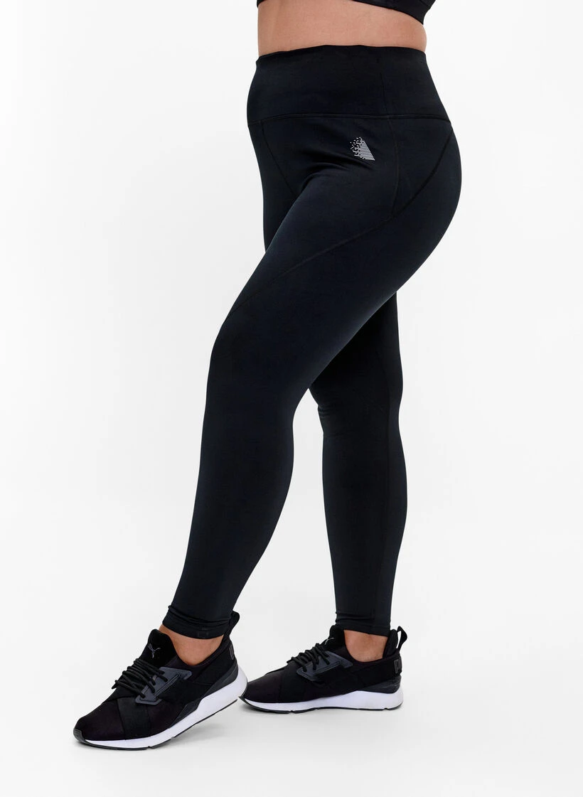 Super stretchy and squat-safe training tights with a soft fleece lining and flattering v-shaped back seam for a comfortable fit. The wide waistband has a hidden pocket and adjustable elastic for comfort.