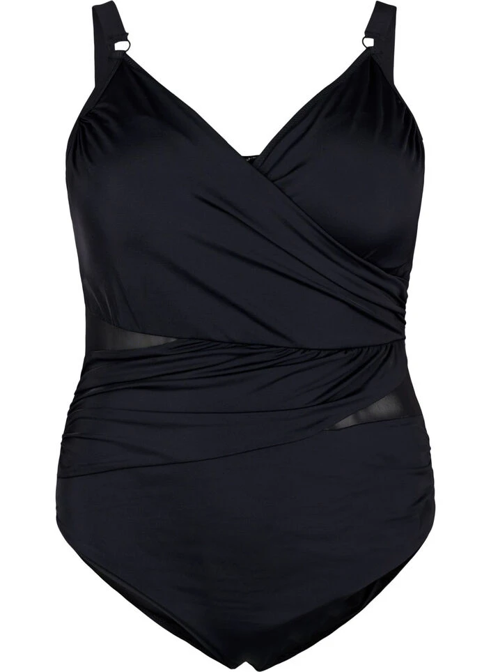 Great swimsuit with wrap-effect and draping, providing a lovely shape. It has adjustable straps and a round backline.
