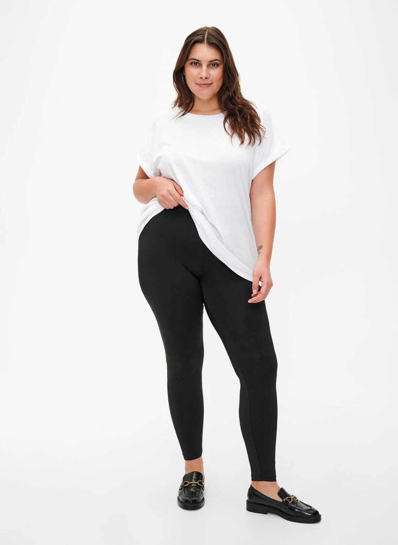 Solid colored basic leggings with elastic waist in a soft stretch quality made from 95% recycled polyester.
