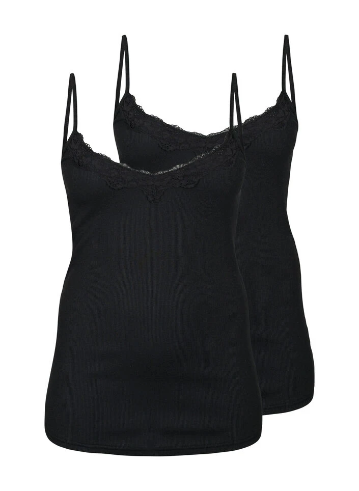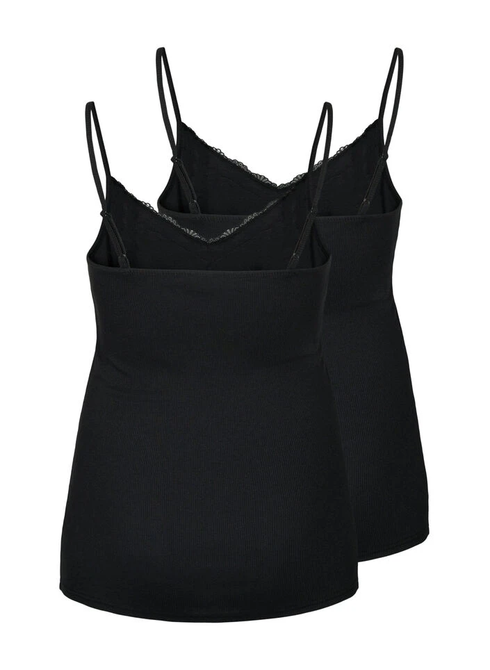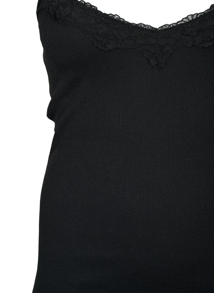 Feminine night top with narrow, adjustable straps and a delicate lace trim on the V-neckline. The night top is made from a soft and comfortable blend of modal and cotton with ribbed texture.
