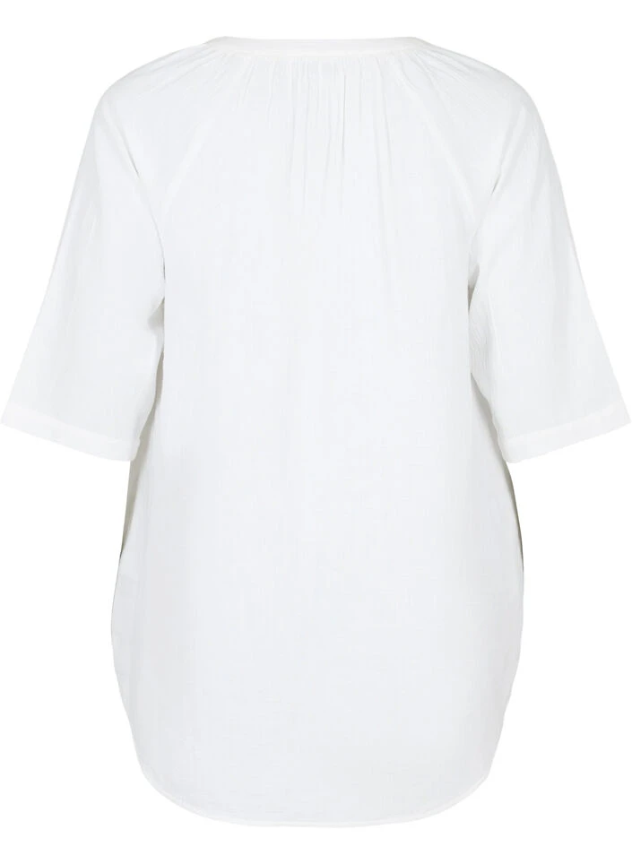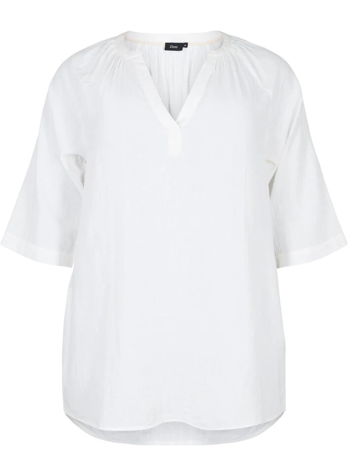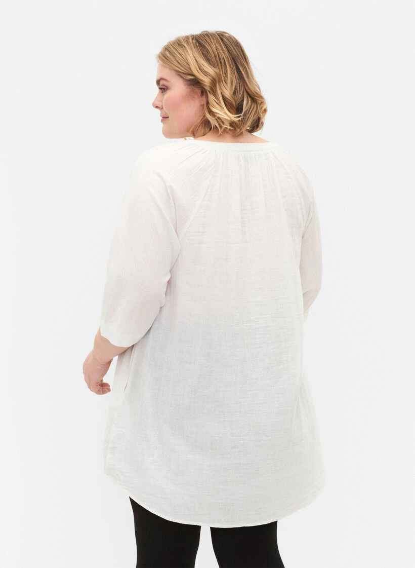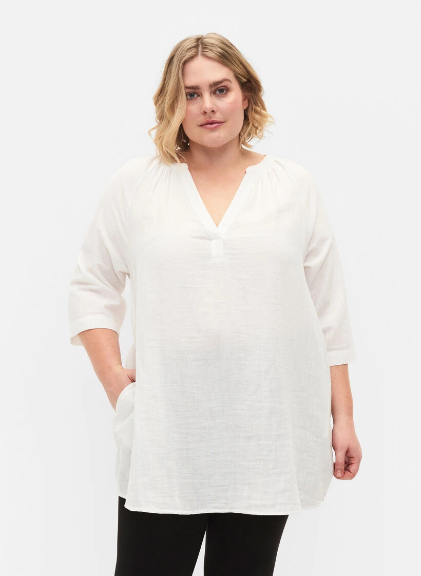 Tunic in comfortable cotton and a loose fit. It has 3/4 sleeves, v-neckline and side pockets.