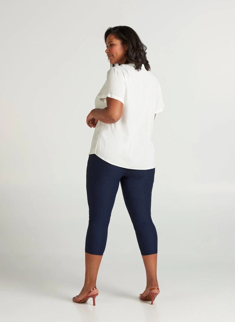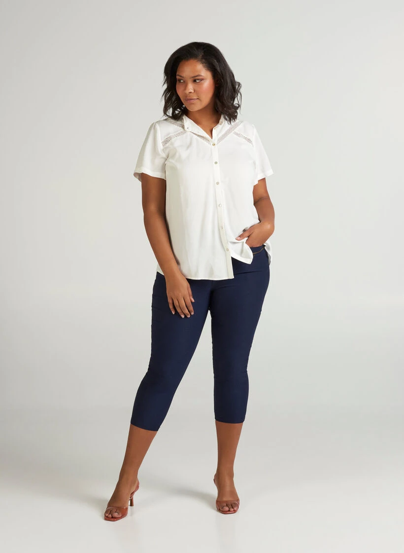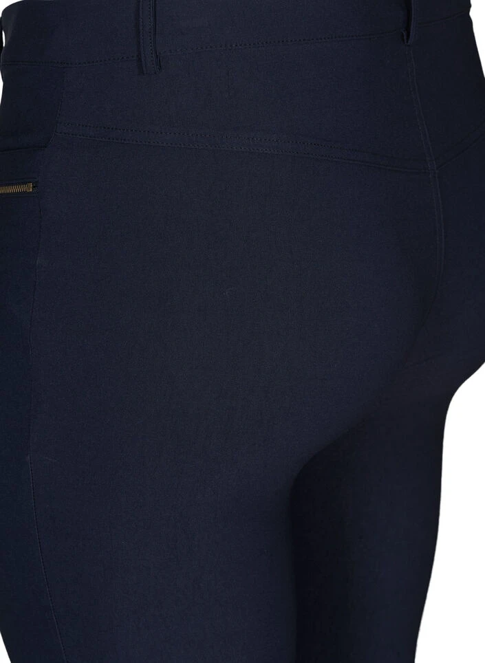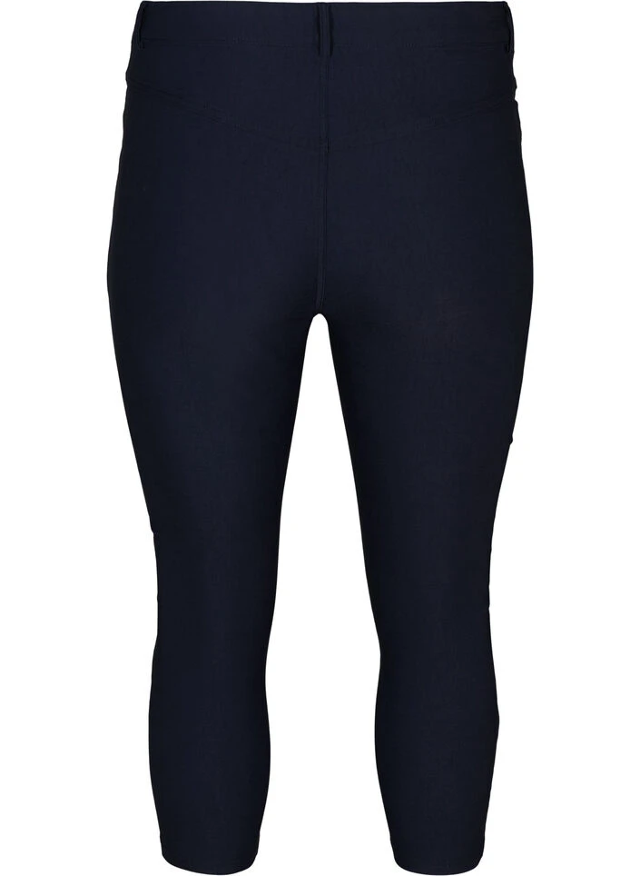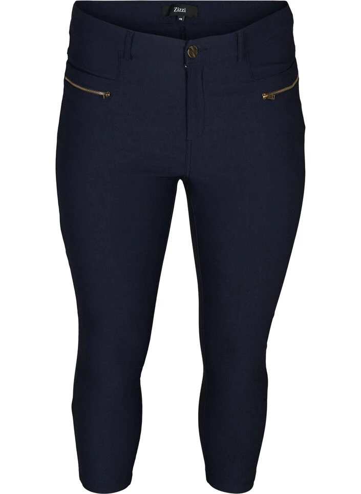 Simple, plain, 3/4 trousers, made from a comfortable and stretchy viscose mix The trousers have a close fit and zipper detailing on the front.