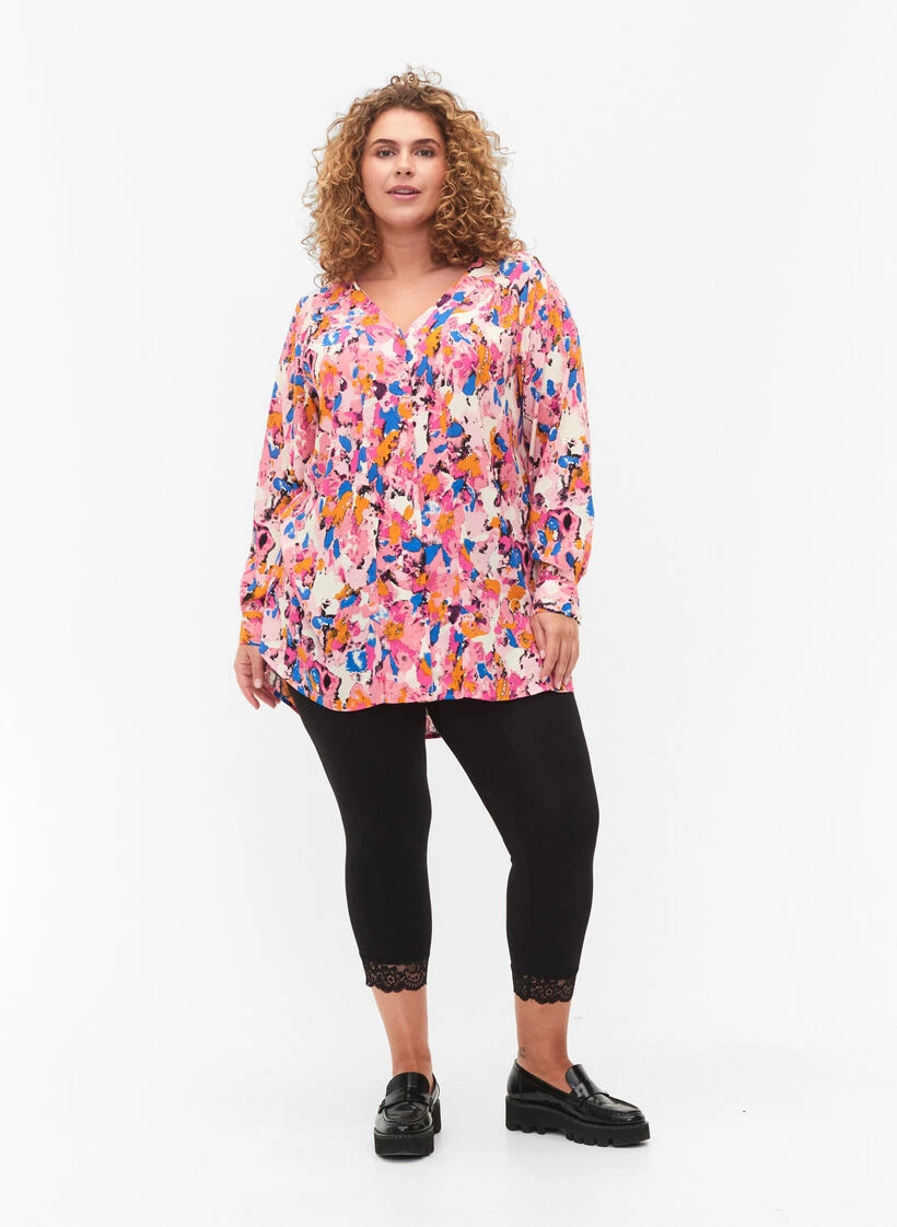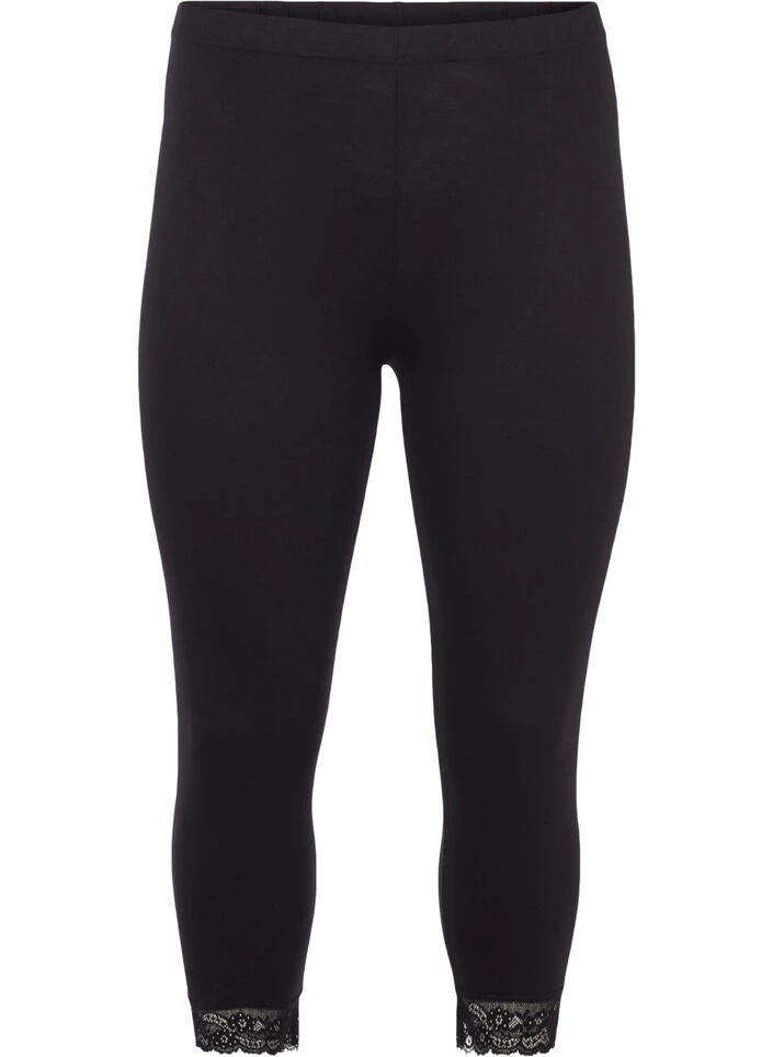 Super comfortable basic leggings with 3/4 length and a feminine lace trim at the bottom. They are made in a stretchy viscose fabric and have elastic in the waist.