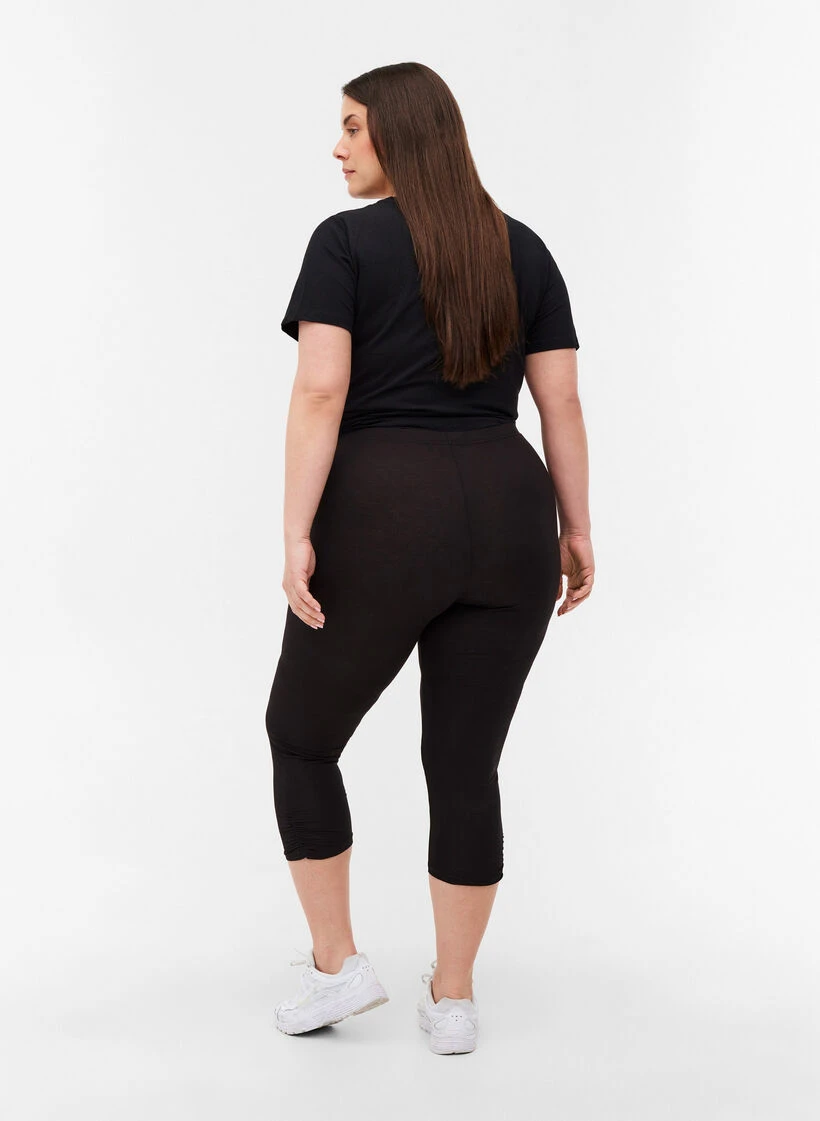 Stylish plain-coloured basic leggings in a 3/4 length with wrinkled detailing at the bottom. They are made in a gorgeous viscose fabric with stretch and have an elasticated waist.