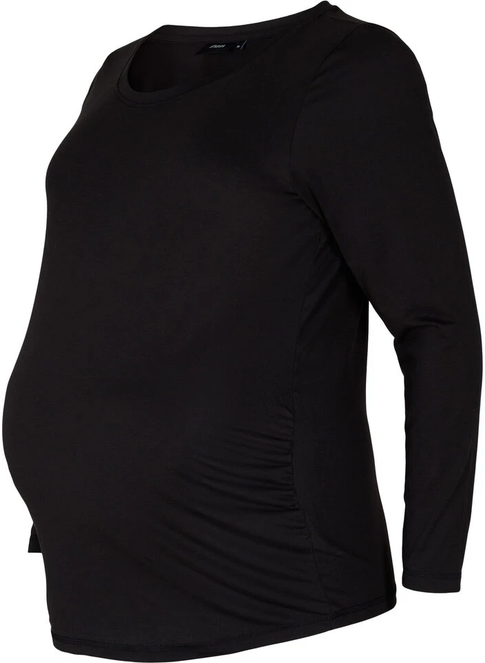 Nice basic maternity blouse in a simple and comfortable design. The blouse is close fitting and has long sleeves and a round neckline.