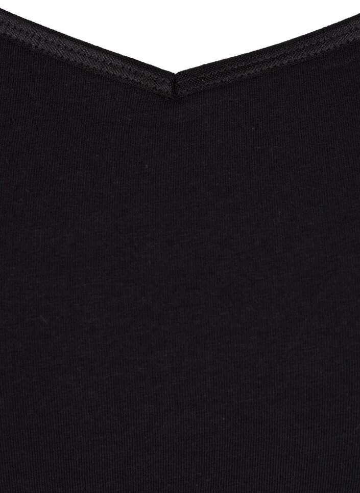 Very comfortable top, made from a stretchy cotton material. It is close-fitting, and has a simple design and thin adjustable straps.