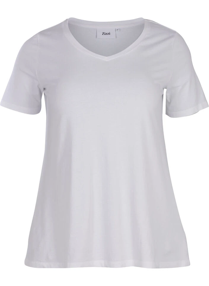The basic T-shirt is an essential element in your basic wardrobe. It can be combined with a pair of Zizzi jeans or a skirt for a classic daytime look.