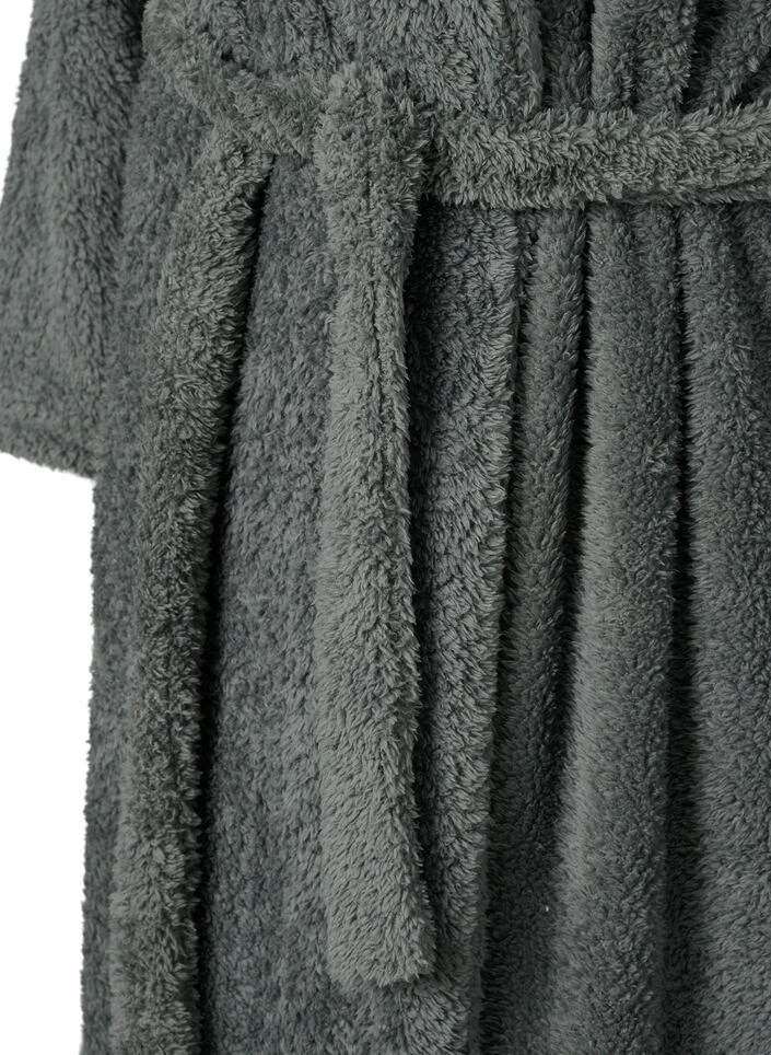 Super soft and comfortable bathrobe with a detachable tie belt that allows for a custom fit.