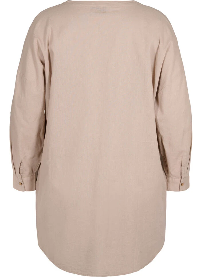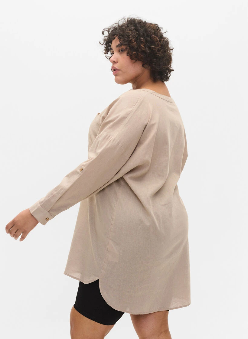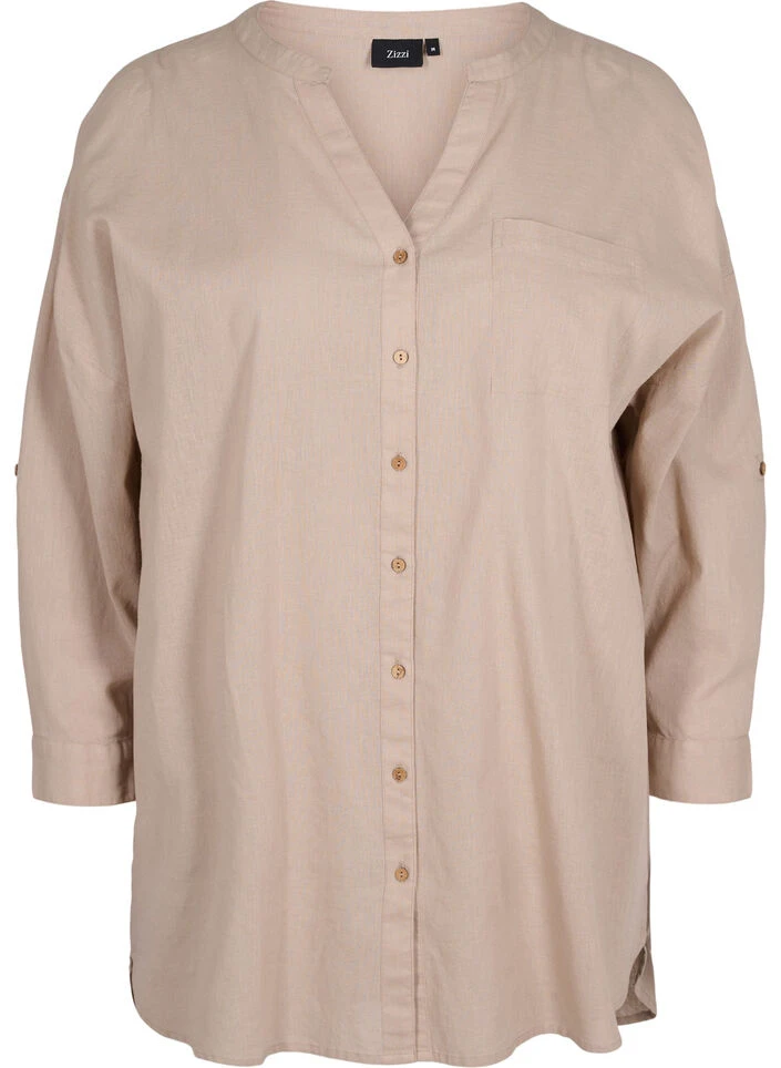 Loose-fitting blouse in a gorgeous cotton blend with linen. The blouse has a chest pockets, button-through fastening at the front and 3/4-length sleeves with turned up hems.